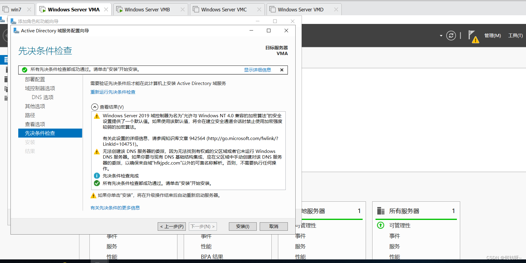 DNS服务器与AD集成: 主预控的DNS填本机的ip,或不填,辅域控的DNS填主域控的ip