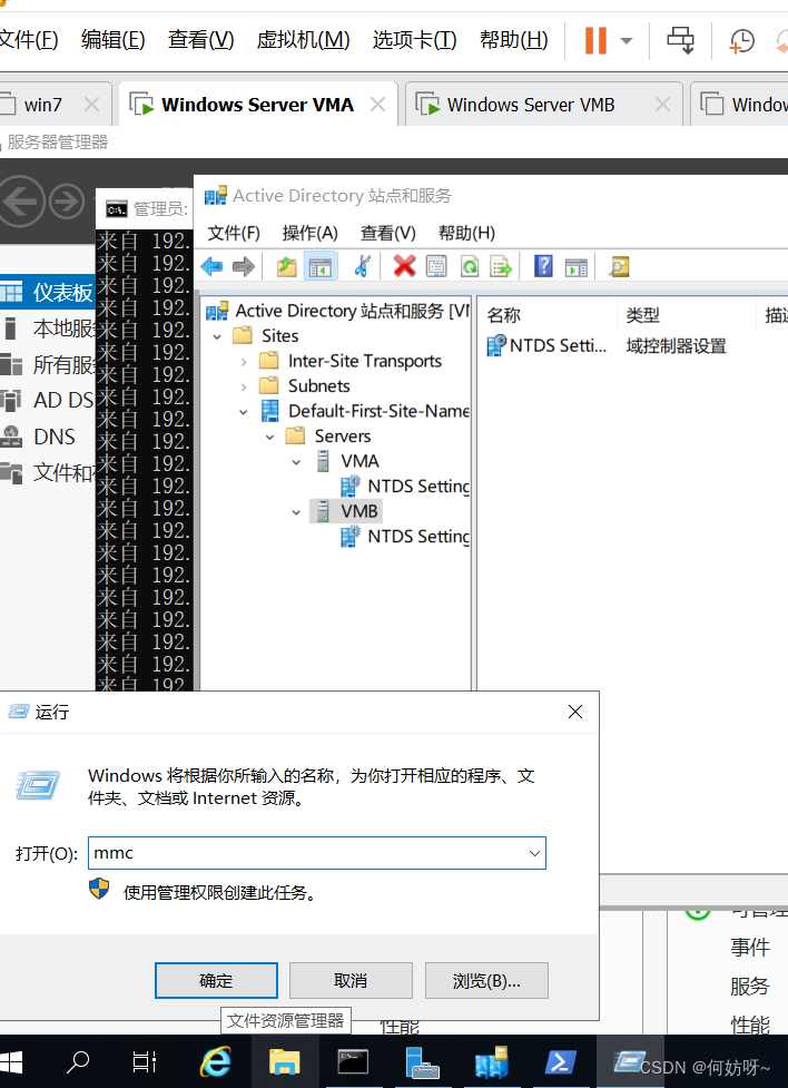 VMA、VMB虚拟机配置为主辅域,域名为szpdc.com;