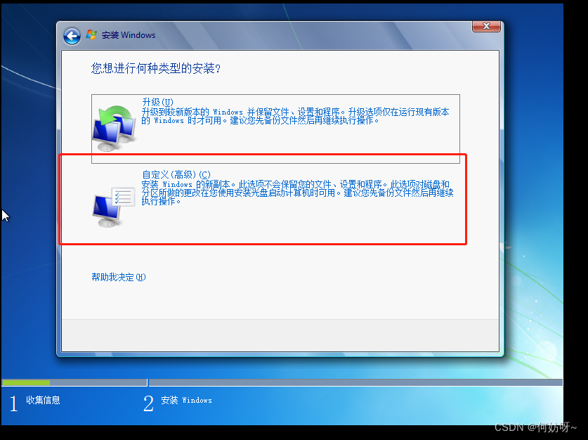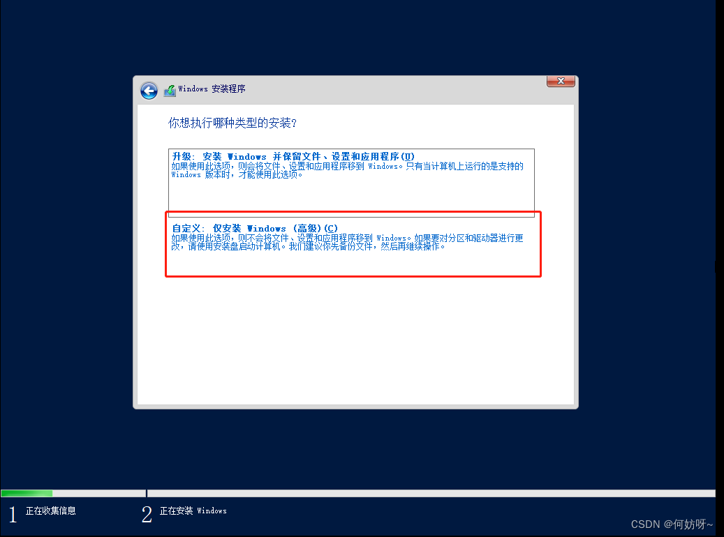 5、“自定义:仅安装windows高级”