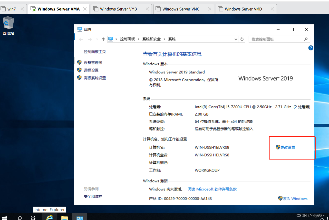 1、为了方便管理,对每个主机名进行统一修改,右键计算机属性进入系统界面,点击“更改设置”