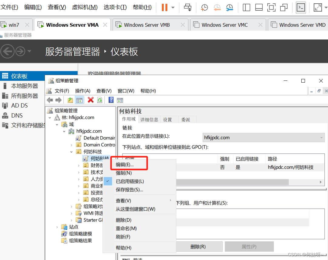 3、右键GPO,选择编辑