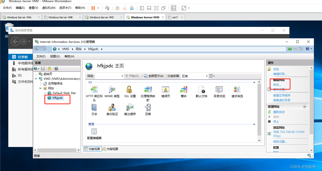 1、选择hfkjpdc站点,右侧点击绑定