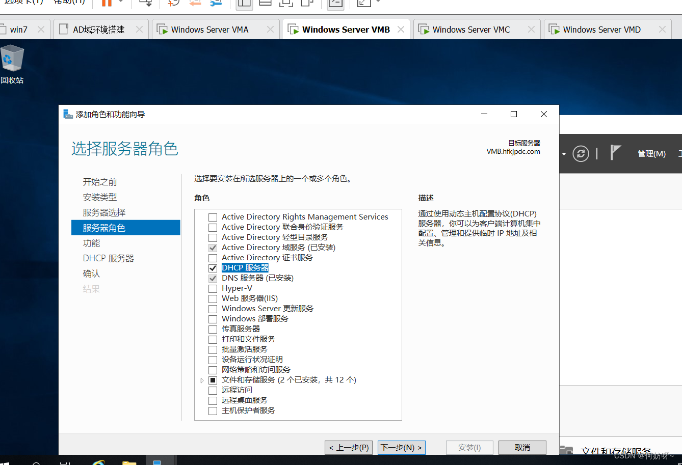 1、安装DHCP服务,选择“添加角色和功能”