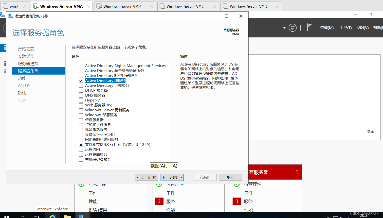 5、勾选Active Direstory 域服务,然后进行下一步