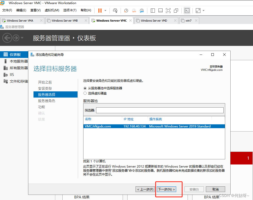 5、看到VMB服务器,进行下一步