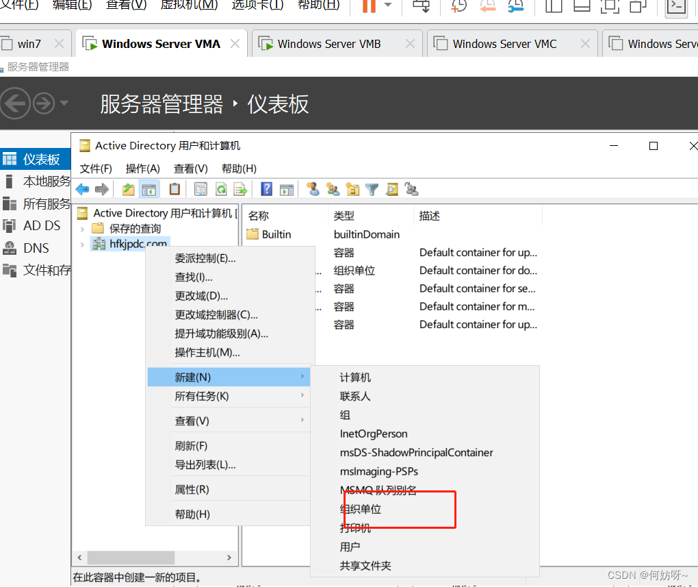 2、hfkjpdc.com新建组织单位
