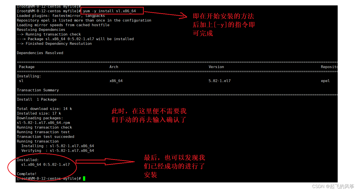 对于上述安装的做法,会弹出我们手动输入【-y】进行确定的场景,那么是否有办法不需要我们手动的去输入,而是系统直接完成呢?当然是有的,具体如下: