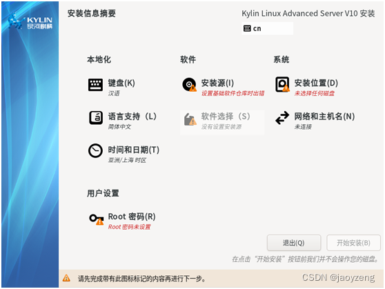 使用LSI创建raid,2块ssd作raid1(拿到设备时此项已作好本次不重作),使用u盘安装kylin到ssd raid上,11块hdd作raid5+1热备。