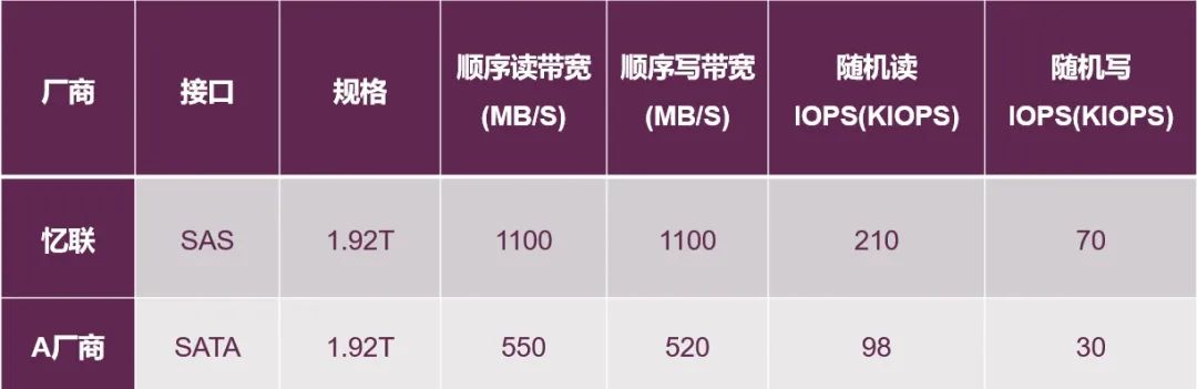 下表为忆联SAS SSD与国际知名A厂商SATA SSD的性能对比。
