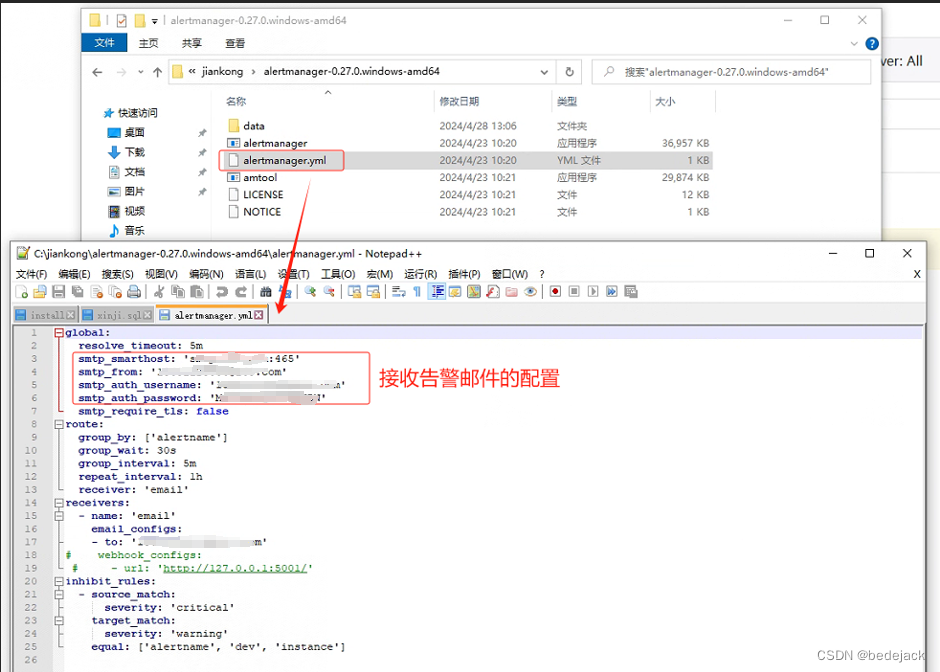 说明:与prometheus链接并不需要进行配置,保存配置后右键管理员启动alertmanager