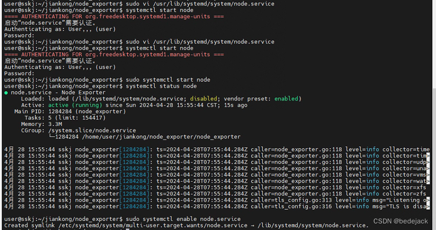 再增加开机启动sudo systemctl enable node.service