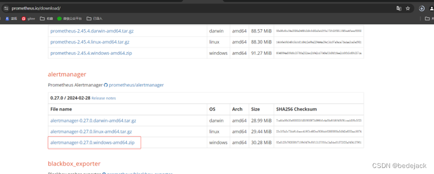下载地址:或者https://prometheus.io/download/