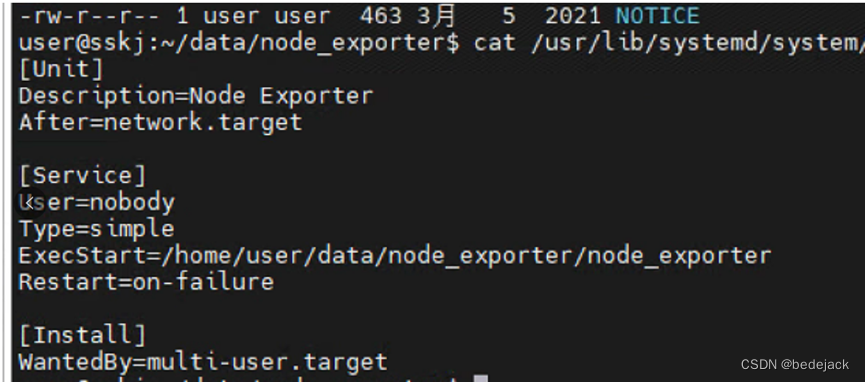 上图ExecStart之后为程序所在启动工具,--config为主配置文件 –storage为数据存储路径,需要保证USER配置的用户拥有该目录权限。