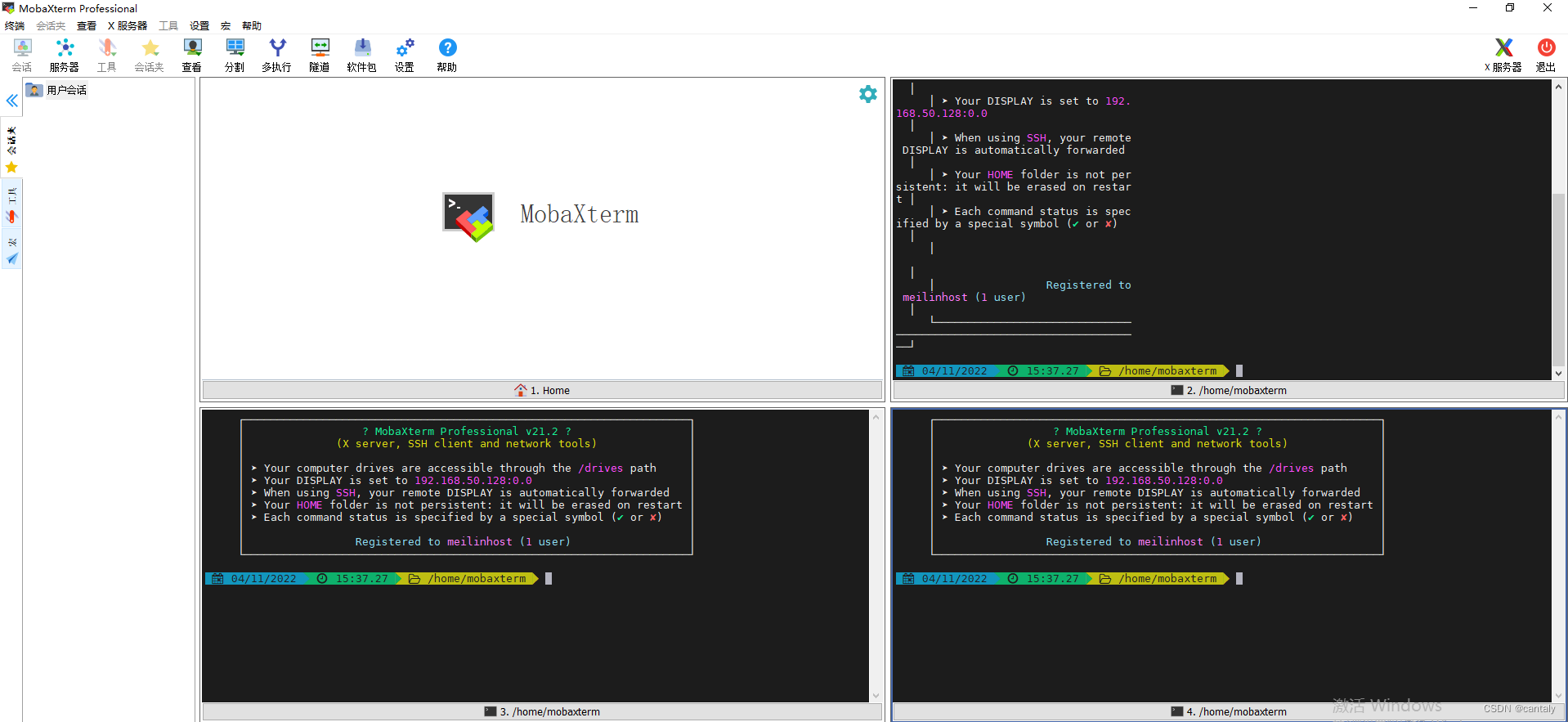 常用X Server有免费的Xming、收费的Xmanager(非常棒的Xshell终端软件也是他家出的,家庭教育用户免费使用) 等;上述需要手动配置,然而有了MobaXterm,一切都变得超级简单!