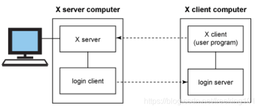 X serverv和vclientv可以位于同一计算机上,就类似于平时使用的Windows操作系统;当X server和client不在同一计算机时,使用本地的X server 进行绘制、交互,就变成了远程桌面。