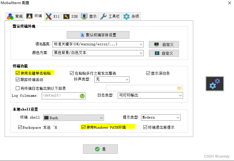 如果您 Windows 下安装了 node、Python 等环境,发现相关命令无法在MobaXterm 使用,打开 Settings – Configuration – Terminal – 使用Windows 环境变量,如下截图。