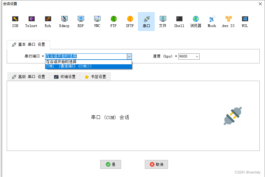 更加友好的串口连接设置。MobaXterm 不仅支持串口连接,并且直接提供下拉框选择串口号和波特率,选择串口号时还会自动显示串口设备的名称。这一点对于开源硬件玩家是相当幸福的。