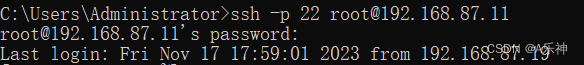 以上是端口默认22情况下ssh连接,有些公司它不是22,需要指定端口 ,格式为:ssh -p 22 root@Ip ,如下图