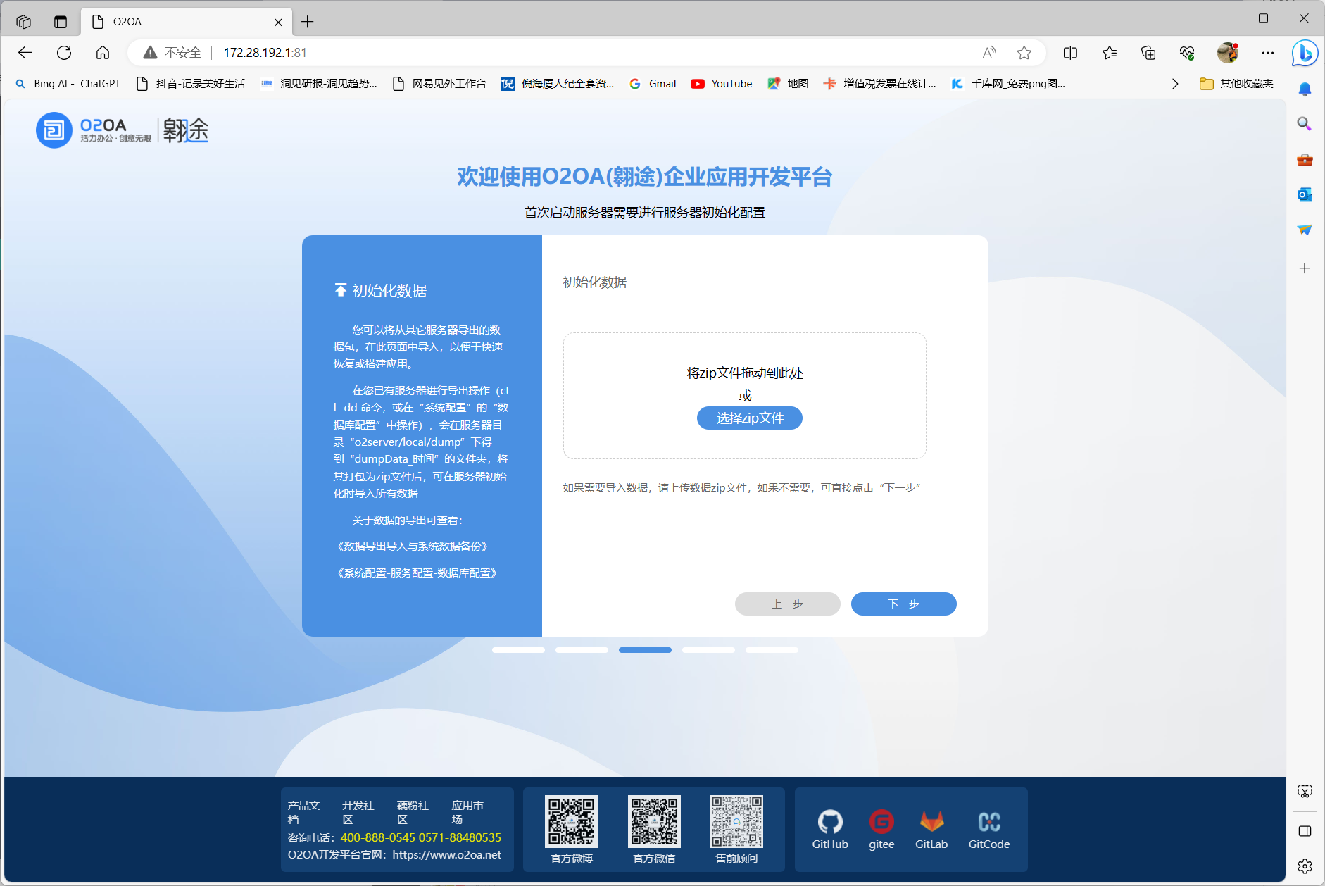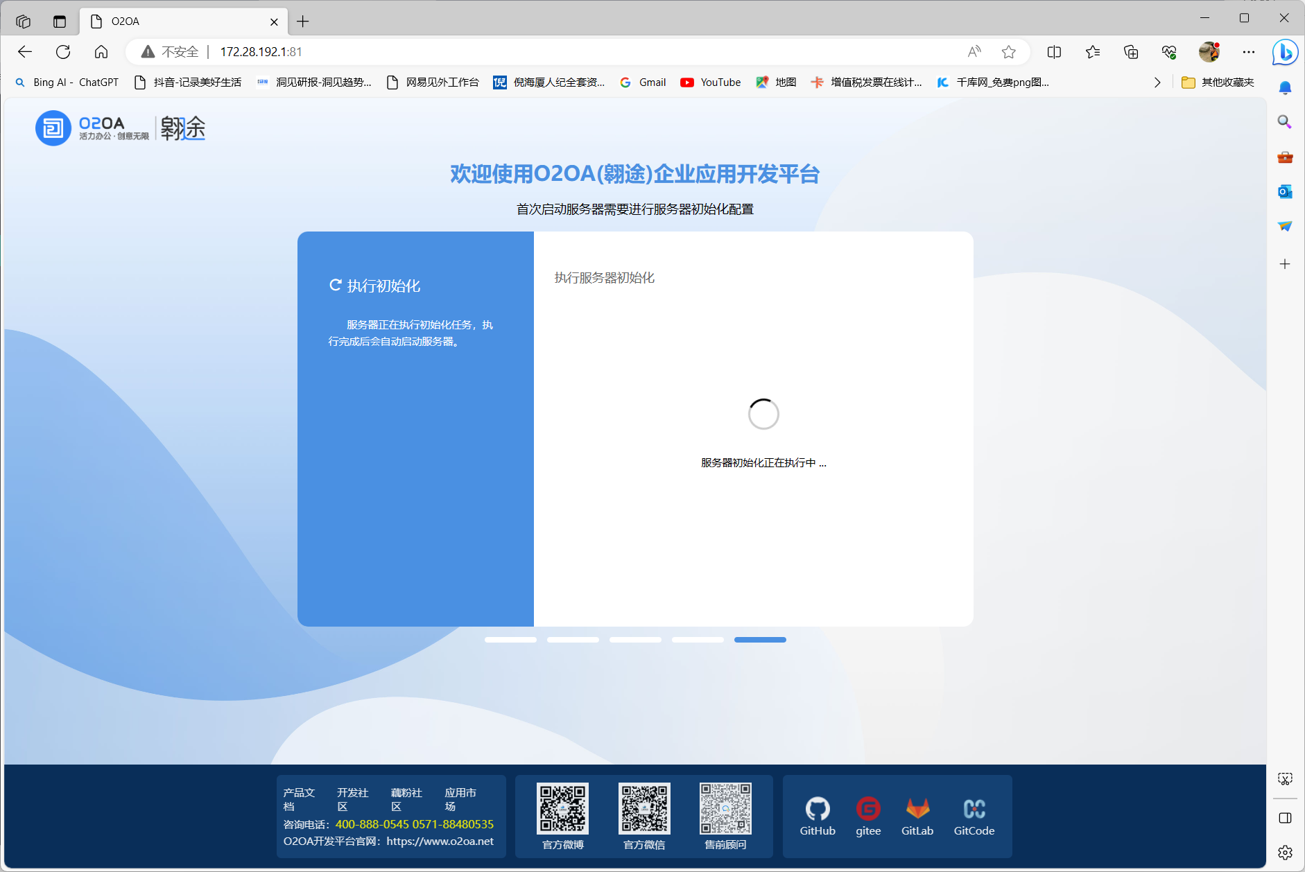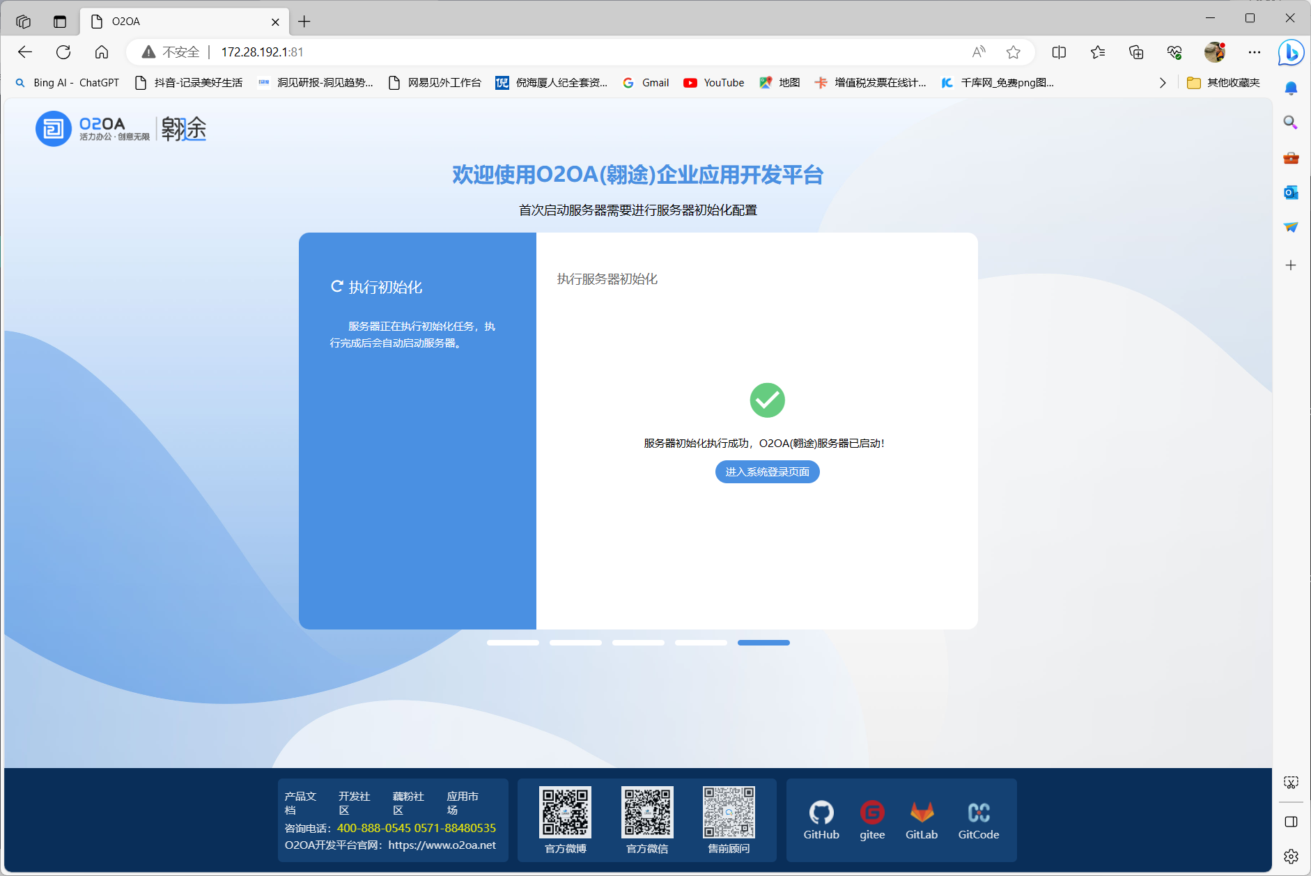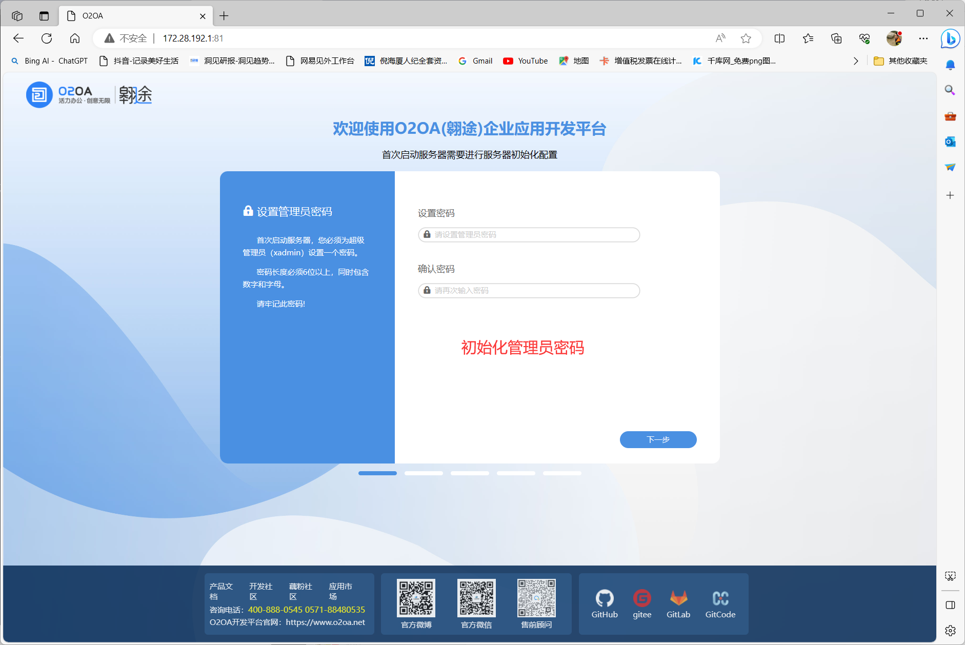 使用控制台给出的服务器初始化地址,访问服务器初始化页面。