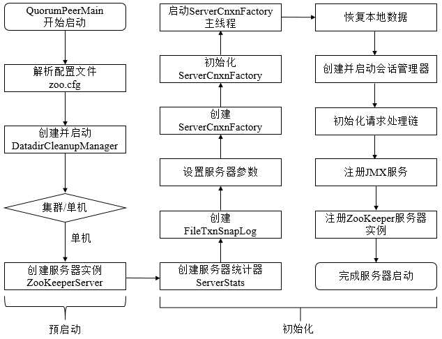 注册ZK服务器实例:此时ZK服务器初始化完毕,注册到ServerCnxnFactory之后就可以对外提供服务了,至此单机版的ZK服务器启动完毕