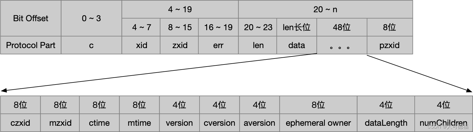 | 00,00,00,00,00,00,00,04 | 95-102位:pzxid 最后一次对子节点列表变更的ZXID | 4 |