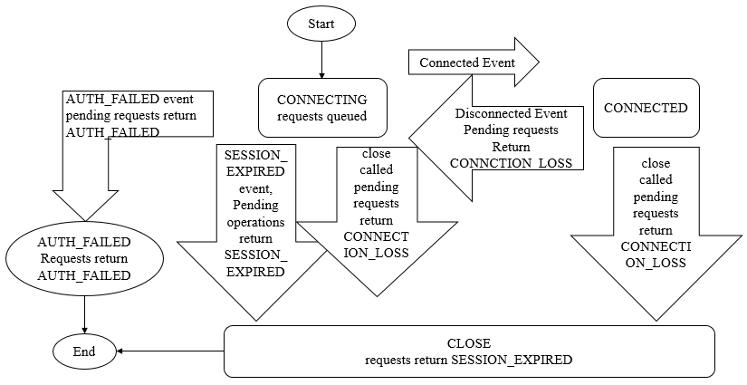 会话状态有:CONNECTING CONNECTED RECONNECTING RECONNECTED CLOSE