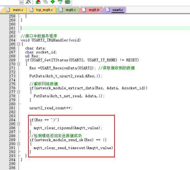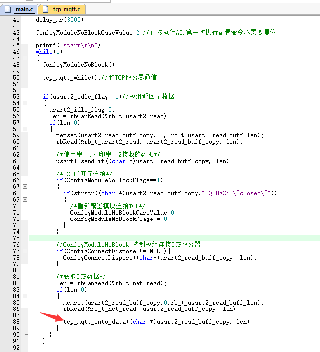 1,串口2接收模组数据的时候,单独使用一个缓存,缓存了TCP接收的数据