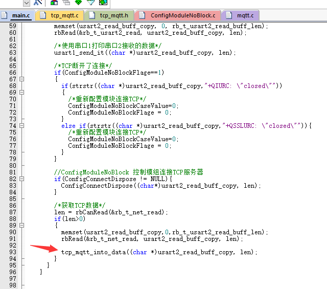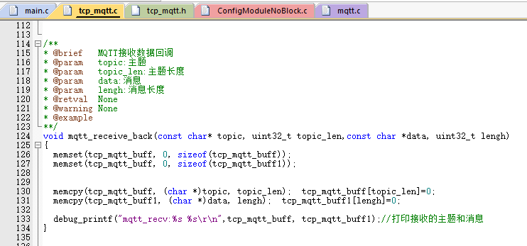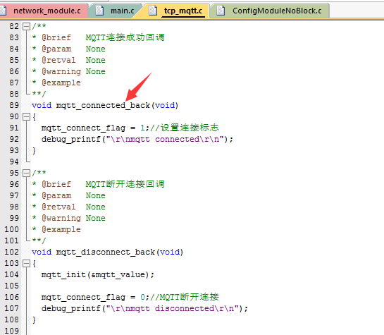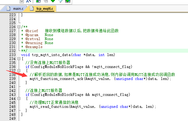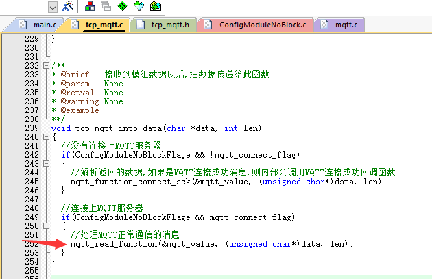 连接MQTT成功以后收到的服务器发送的数据需要让 mqtt_read_function函数处理, 该函数内部会处理消息并调用相应的回调函