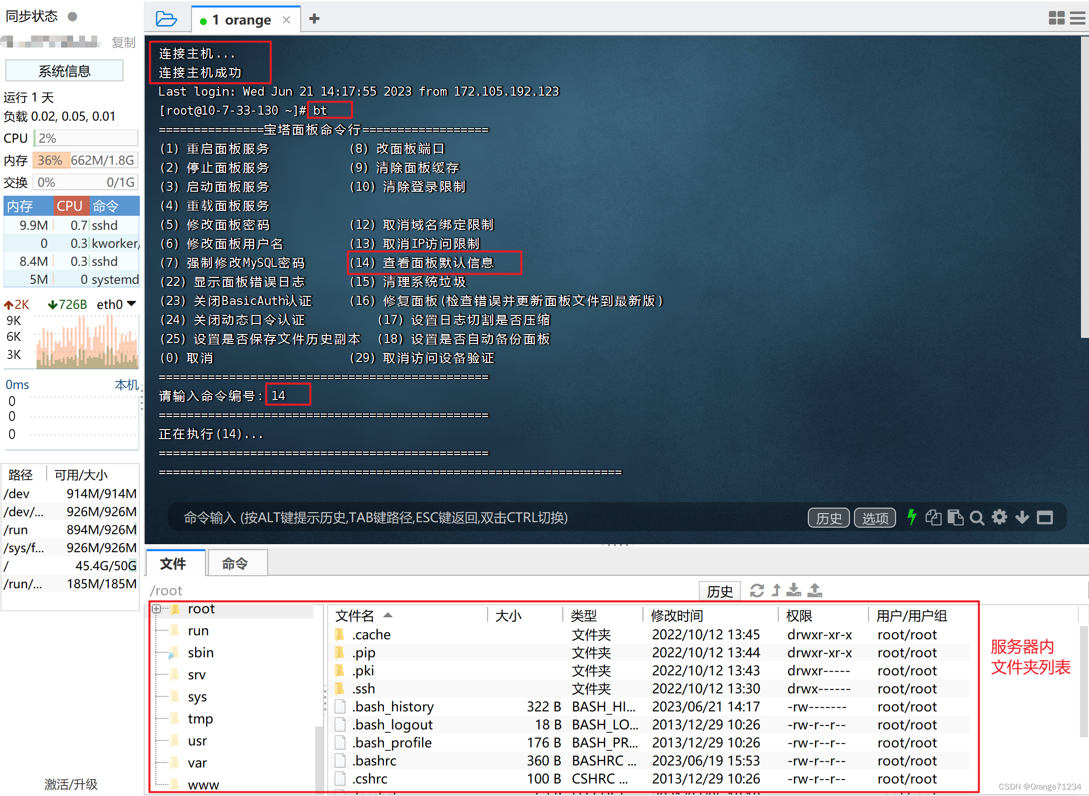 三. 用FinalShell连接服务器,获取宝塔面板地址