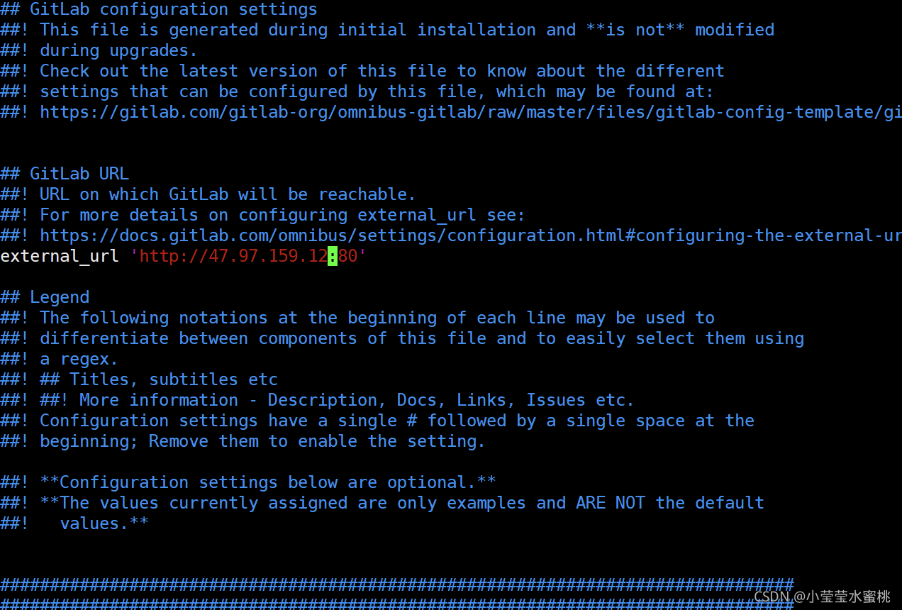 vim /etc/gitlab/gitlab.rb 主要修改ip和port端口号,有域名直接填写域名,也可以写ip地址