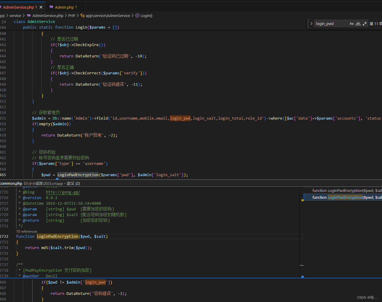 从login找到方法AdminSave-->LoginPwdEncryption-->