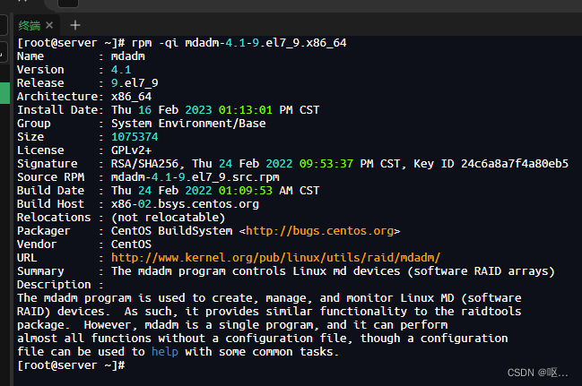 rpm -qi mdadm-4.1-9.el7_9.x86_64