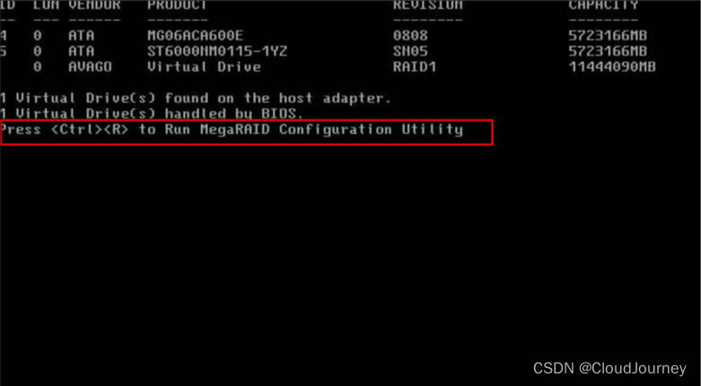 登录RAID的管理界面,重启服务器,在服务器的启动过程中,所示的“Press