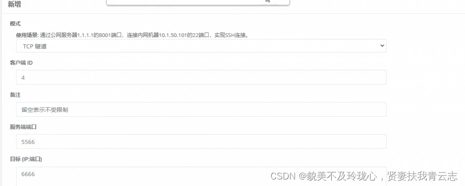 将访问服务器5566端口的流量发送至客户端的6666端口