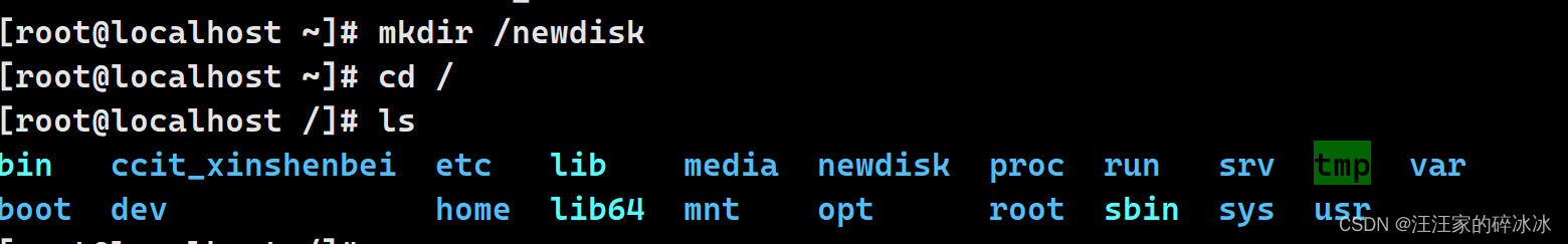 那么根据实验要求,我们创建挂载目录 /newdisk, 然后我们将分区挂载到该目录