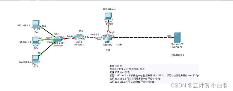 实验,192.16.2.1 主机拒绝ping 通 服务器 192.168.3.1 但可以访问服务器的 web 和 ftp