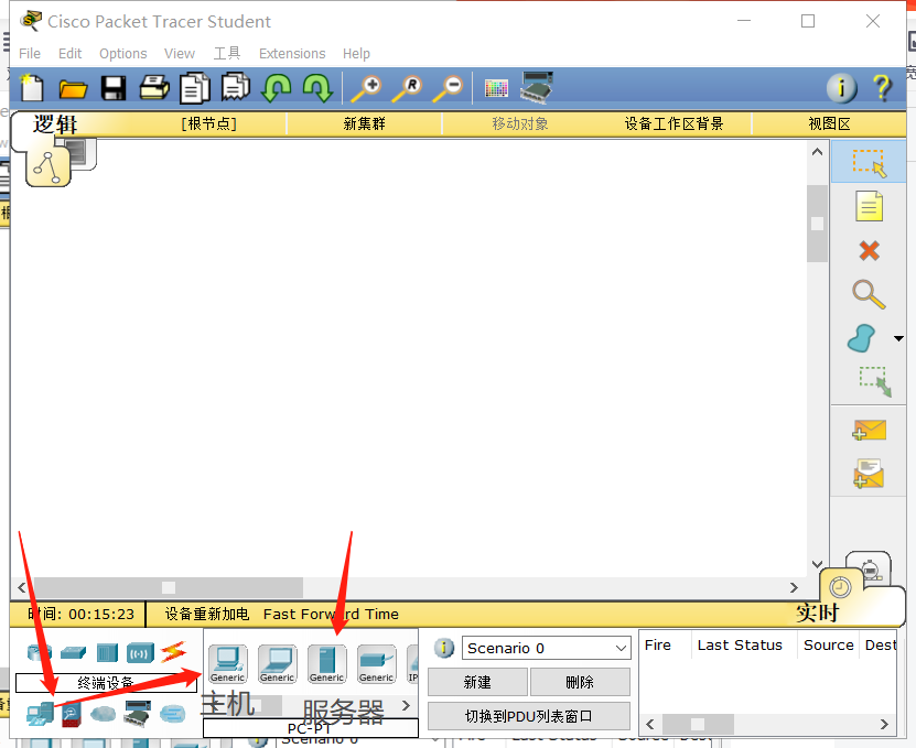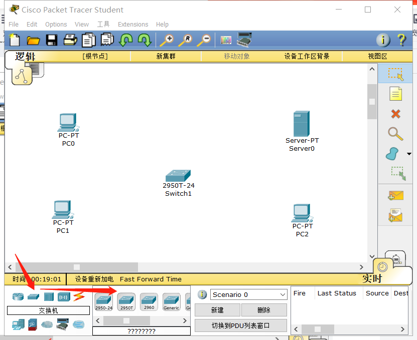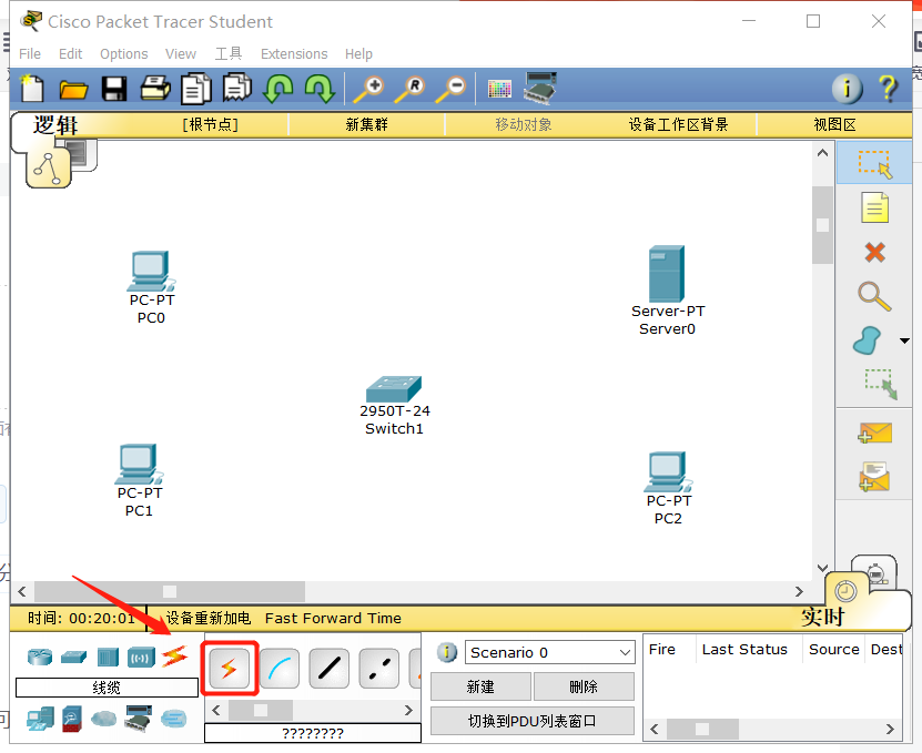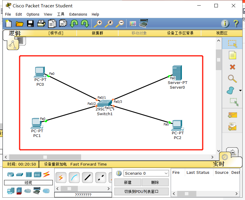 通过Cisco Packte Tracert软件,组件一个局域网,利用到上面我们准备的软件。