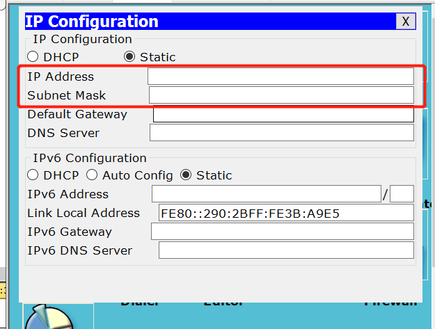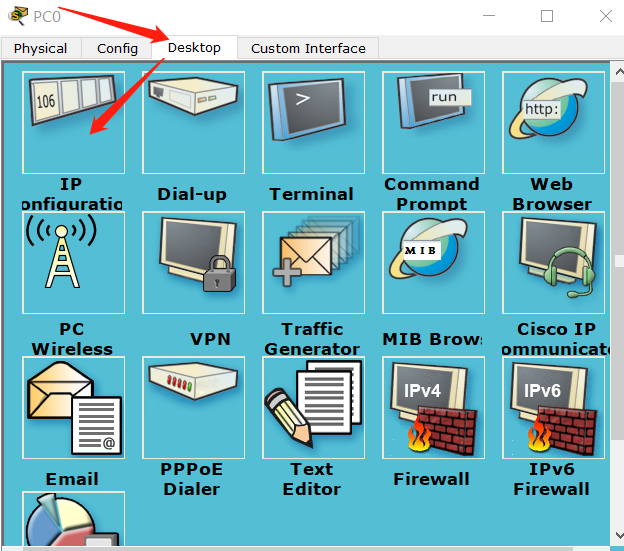 点击任一主机选择Desktop---IPconfigration配置主机IP