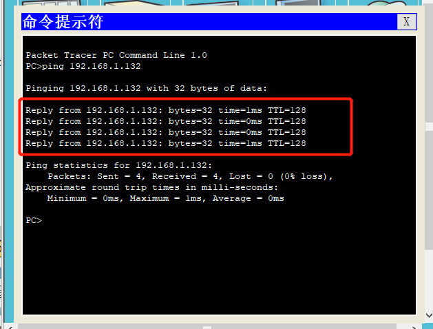 出现以下提示则通信成功,分别测试与另外三台主机的通信。