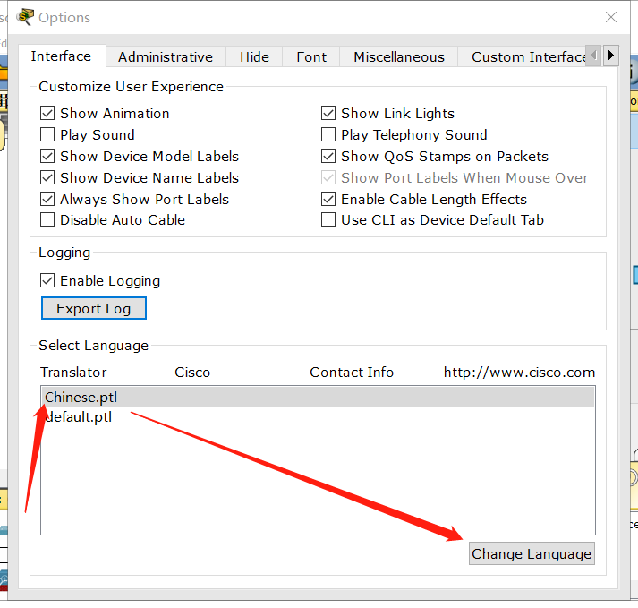点击Chinese.ptl,然后点击Change Language切换语言,关闭重启软件即可。