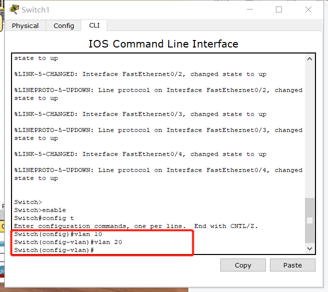 局域网的号可以是0---1024,0和1已经被占用的使用可以用的局域网号是2——1024,这里我用10和20来做示例,因为要分为两组,使用这里创建两个局域网。