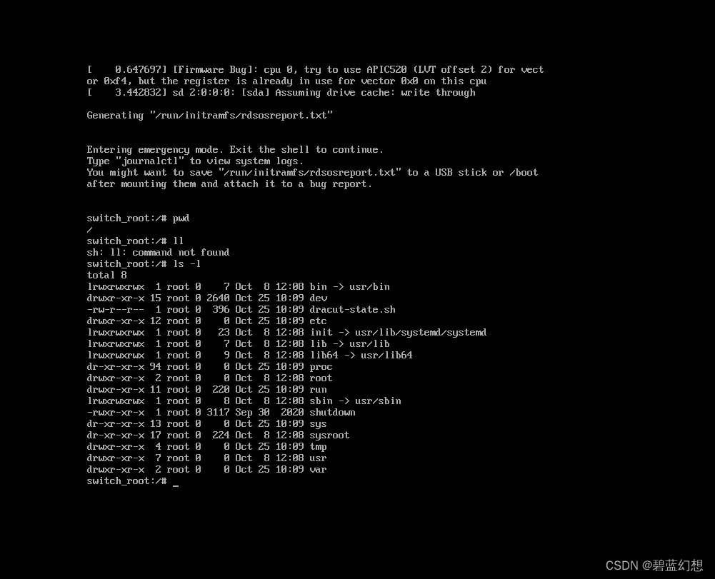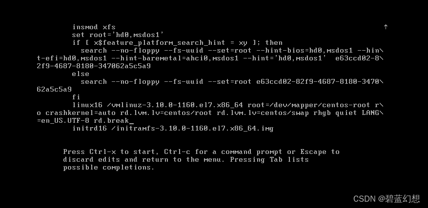 如图所示,输入rd.break,然后按Ctrl+X键进入安全模式