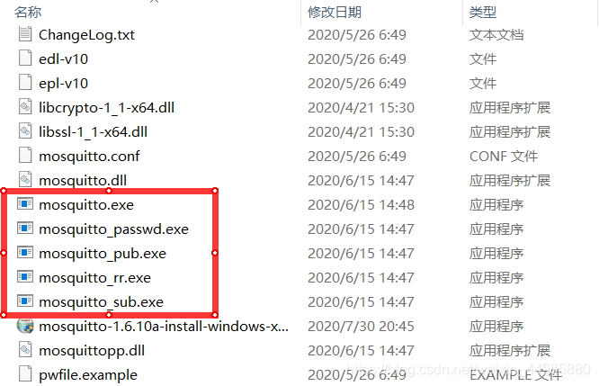 pwfile.example | 通过mosquitto_passwd来存储用户的账号密码的文件 |