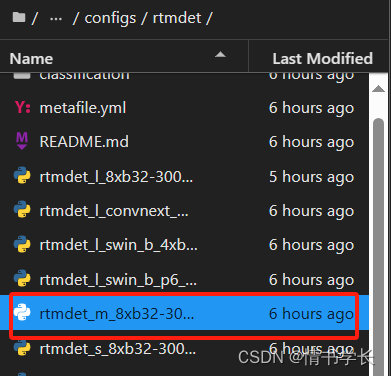 2、在configs目录下找到自己需要的配置文件,我用的是RTMDET的m模型