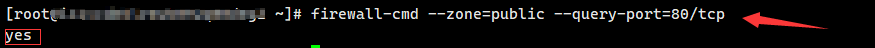 如果是yes,就跳到第3步,如果是no,则表示没有开放80端口,执行指令firewall-cmd --zone=public --add-port=80/tcp --permanent ,然后重启防火墙(一定要重启!!!不然不生效),firewall-cmd --reload,然后再检查80端口,如果重启失败,那么是你没有开启防火墙,执行指令先开启防火墙,systemctl start firewalld
