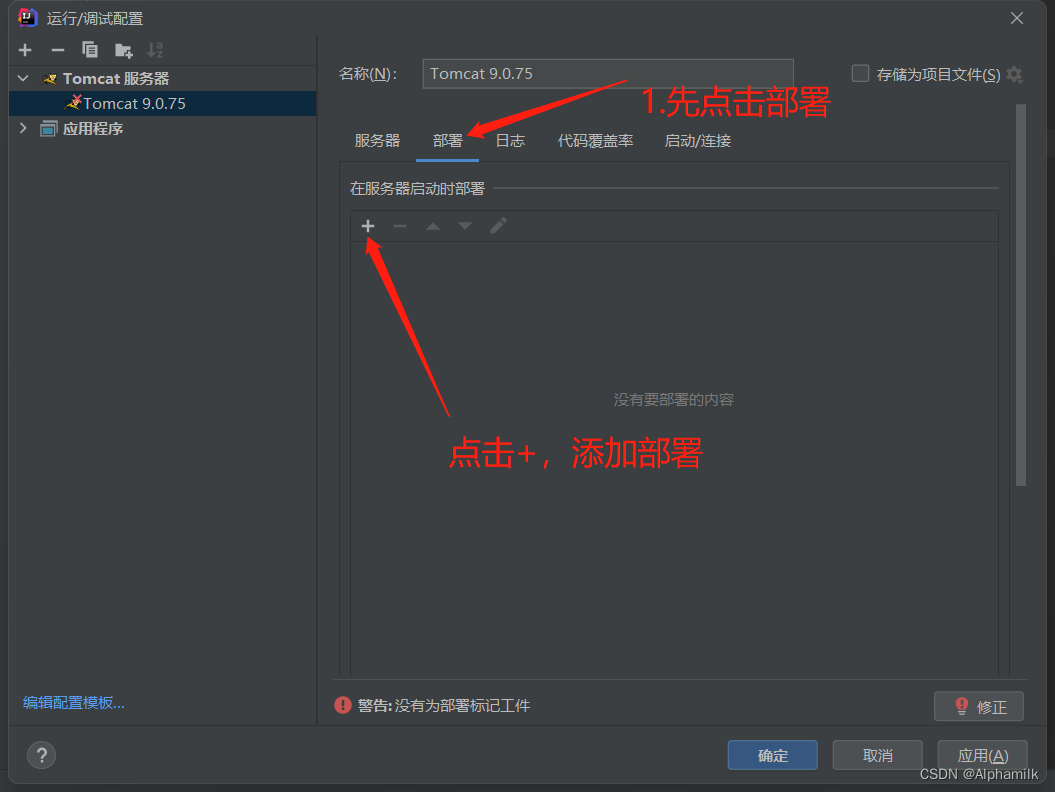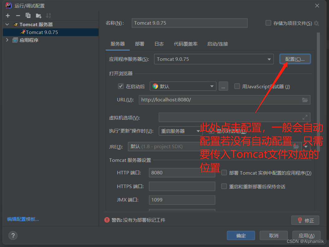 由于作者所用为英文版本,所以我将提供中文版的idea实现Tomcat服务器的部署