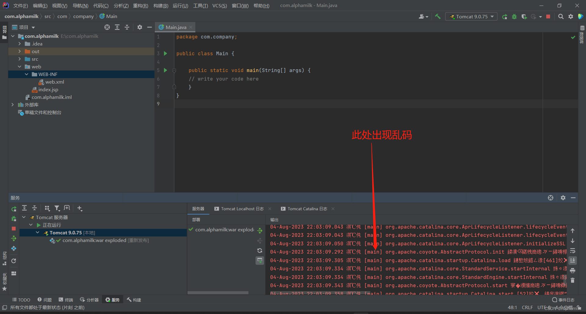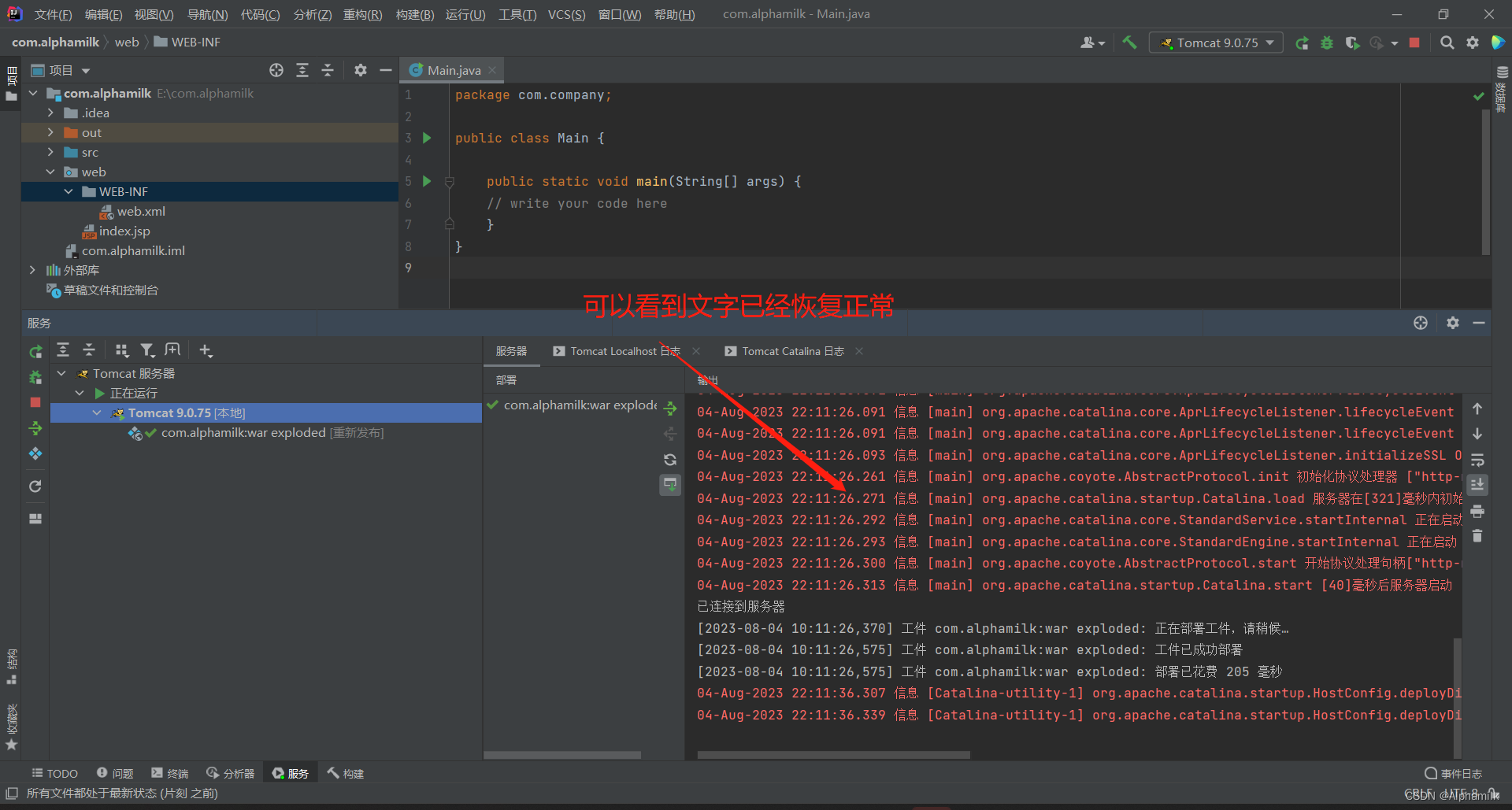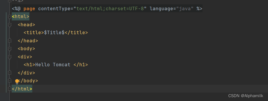 可以看到右边jsp基于html代码实现,那么就将其修改为输出Hello Tomcat