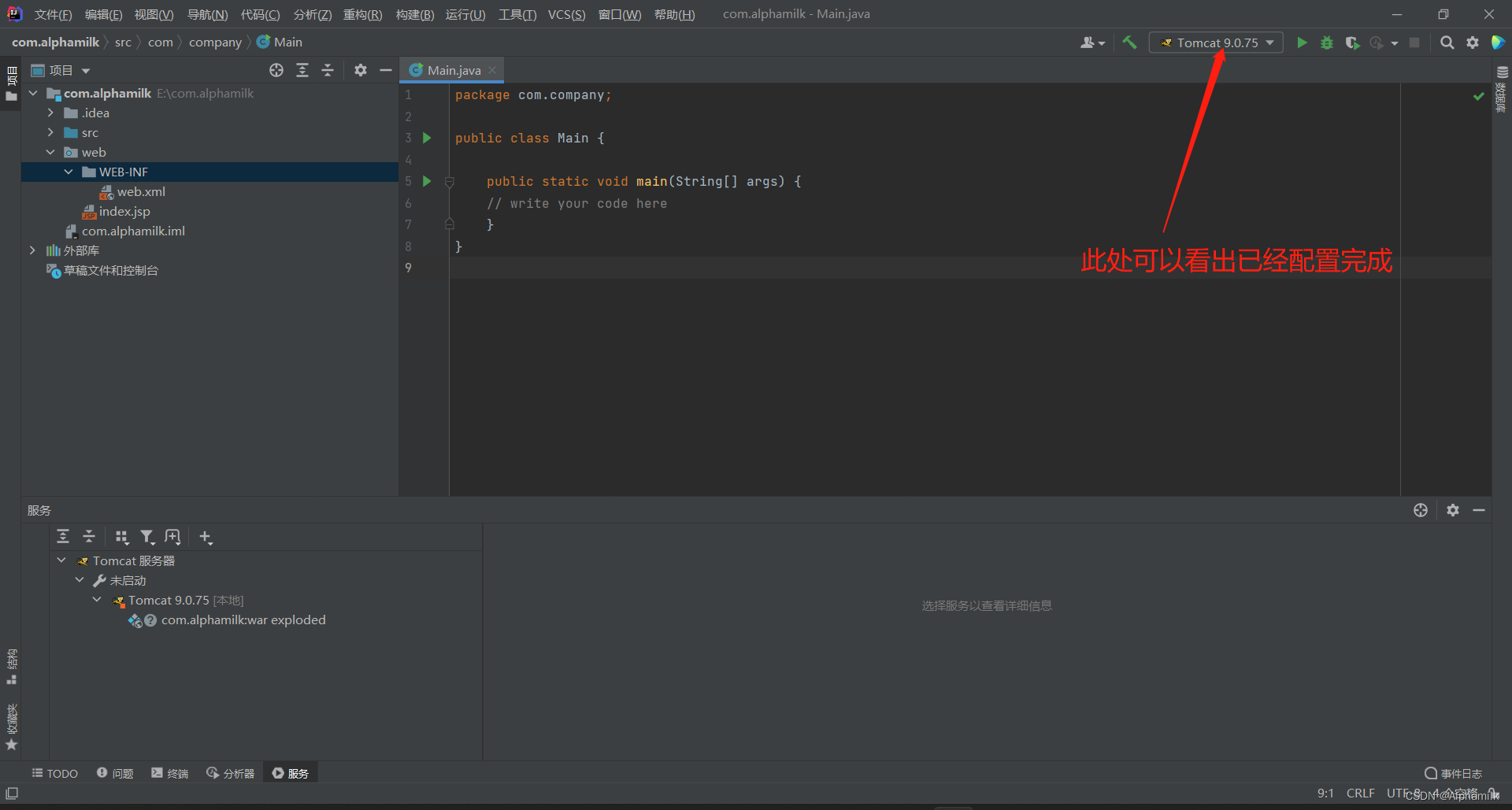 注意:创建web项目后我们需要配置tomcat才能运行,下面我们来进行配置。