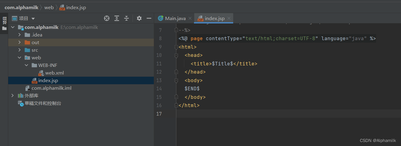 好奇为什么弹出的网页里面显示的内容是$END$,其实是因为当启动Tomcat服务器的时候自动访问了项目下web里面的index.jsp